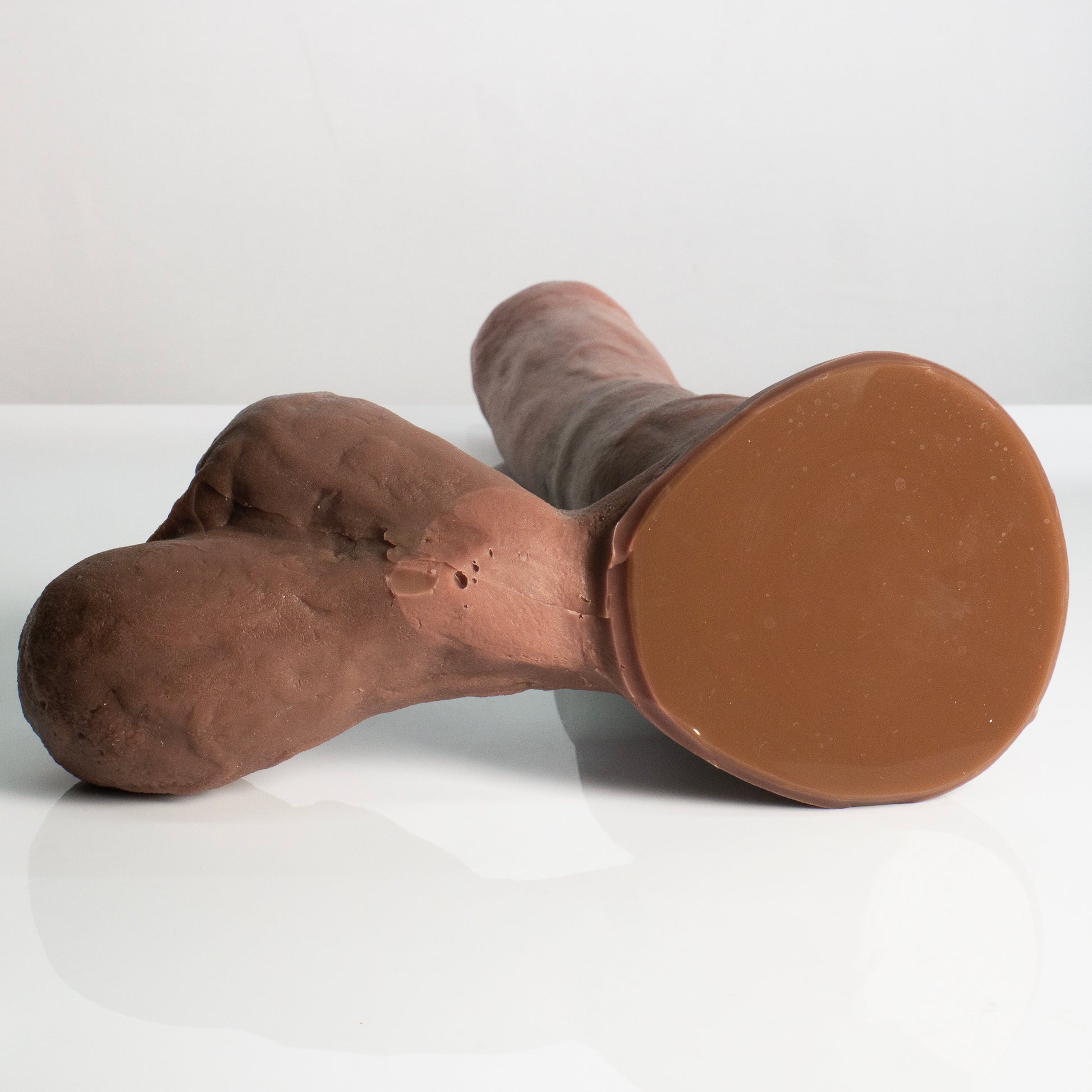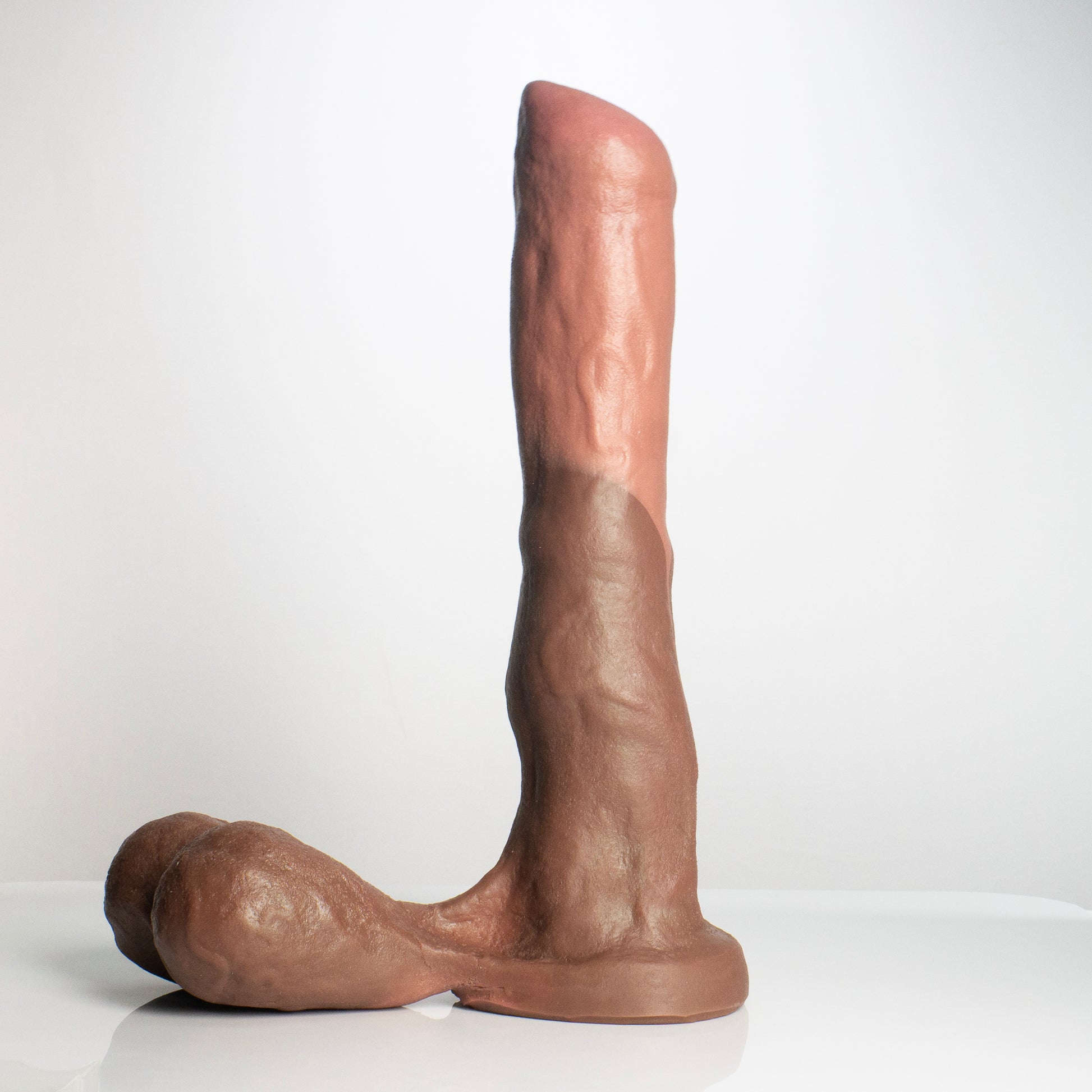 Jake is a very sturdy 13" usable length with fully-formed bouncy balls that experienced players can also use as a butt plug, making him one of the most versatile toys out there! O_o Jake has great realistic texture and veins, and is available in medium (OO-50) and dual-density (Soft outer layer with an extra firm inner core). Because of how we manufacture the fully-formed balls, Jake will have a seam and small air bubble underside of the balls.